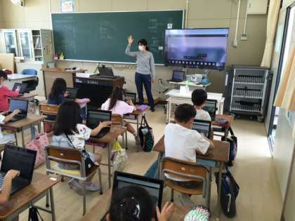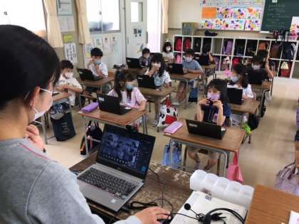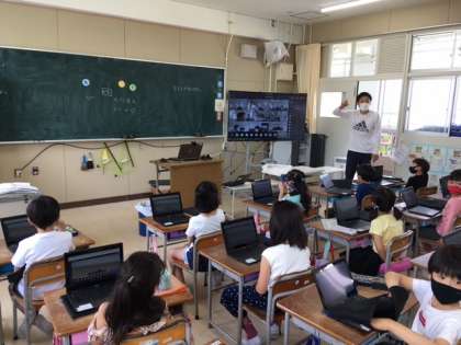3年生以上はすでに双方向通信のテスト終えていますが、学年が下になるほど丁寧な説明が必要です。何度も通信の練習をして、放課後の本番に備えました。