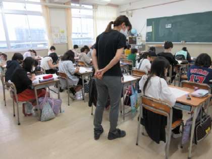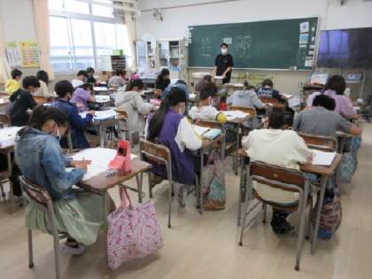 すくすくウォッチを5年生が受験しています。国語、算数、理科、教科横断型問題の順に取り組みました。これまでの学習や普段の生活を思い出して、真剣に問題を解いていました。
