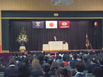 第39回卒業式での学校長による式辞に続いて、連合町会長、PTA会長による祝辞が行われました。