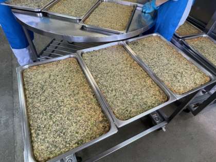 もずく入りヒラヤーチーは、もずく、にら、小麦粉、卵を混ぜ合わせ薄くのばして焼いた手作りののヒラヤーチーで、モチモチした食感でおいしかったです。