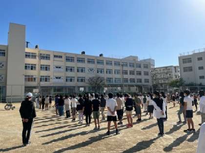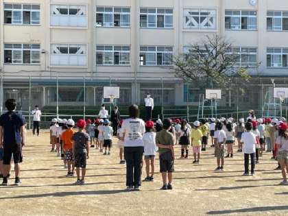 日中は汗ばむくらい日差しが強く、朝晩はすっかり秋になってきました。緊急事態宣言が明けて、久しぶりに外で児童朝会を行うことができました。それでも感染対策は大切だという校長先生のお話を聞きました。また、今日から東井高野小学校で一緒に勉強する教育実習生の紹介がありました。色々なことを学んでほしいと思います。
