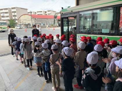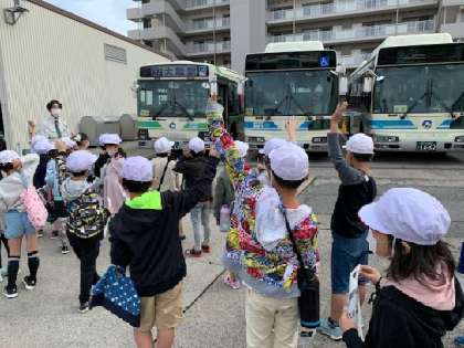 2年生が校外学習として井高野営業所(車庫)へ見学に行きました。井高野営業所に到着すると、係の方から井高野営業所でどんな仕事が行われているかの説明を聞きました。この後、バスに乗って整備の様子を見た後、乗車体験をしました。身近にあるバスが、もっと身近に感じられるようになりました。