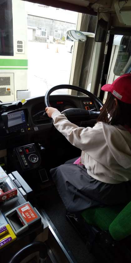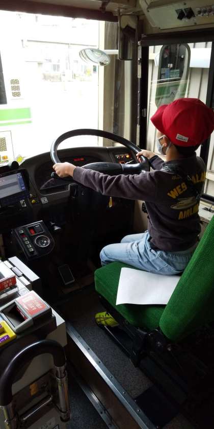 運転席に座りました。たくさんボタンやスイッチがありました。楽しかったです。