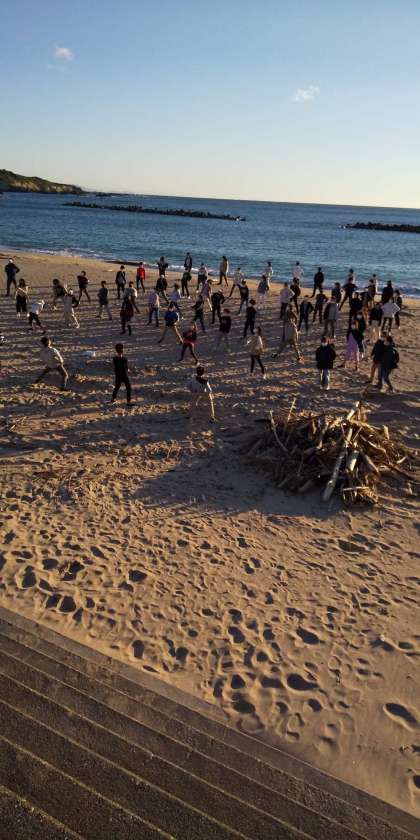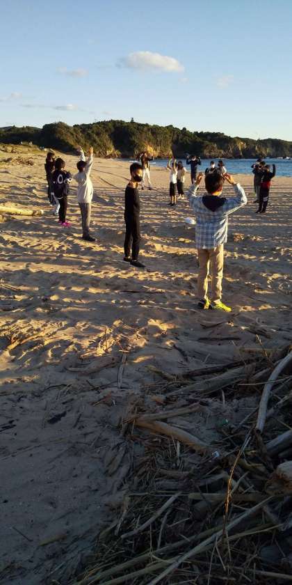 海辺での朝会
