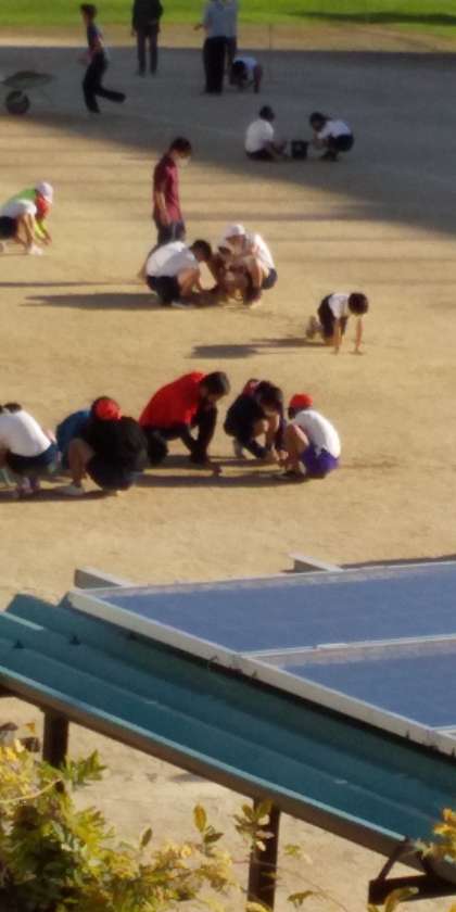 明日は運動会です。6年生の子どもと教職員で準備をしました。晴れたらいいな。明日は楽しみです。