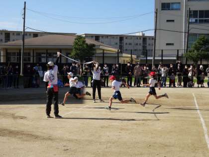 2年生の個人走「ゴールめざして run!!run!!run!!」です。1年生より少し長い距離を全力で駆け抜けました。