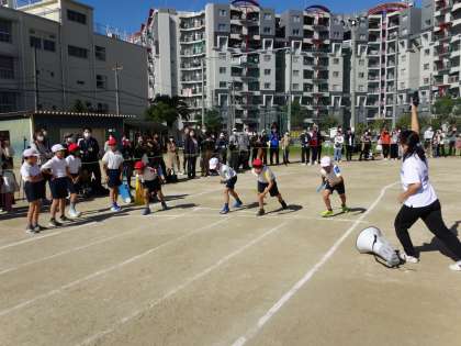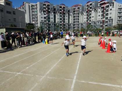 4年生のリレー「ダイナマイトリレー」です。初めてのリレーに挑戦しました。