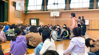 オリエンテーリングの感想を手を挙げて発表してくれました。またオリエンテーリングでの得点発表も行い、得点上位チームに大きな拍手がおくられました。