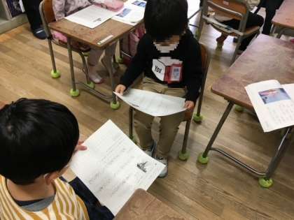 文の読み取りだけでなく、まとめたことを互いに発表し合うなどの対話的な学習も行いました。