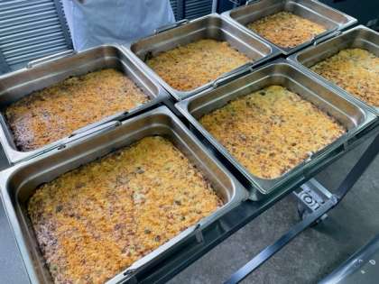 今日の給食は、鶏肉とじゃがいものスープ煮・きのこのドリア・みかん・大型コッペパン・牛乳です。