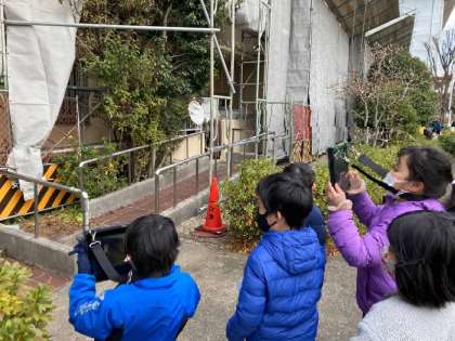 3年生が校区めぐりに行きました。点字ブロックやスロープなど、バリアフリーになっているところをいくつも見つけました。また、町の中にはまだまだ段差や道が細くなっているところもありました。校区めぐりで、普段意識していないことに気付くことができました。
