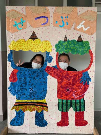 節分の日は過ぎてしましましたが、まだ立て看板は設置しているので、ぜひみんなで写真を撮りにきてください。撮った写真なかよし前に掲示されていきます。