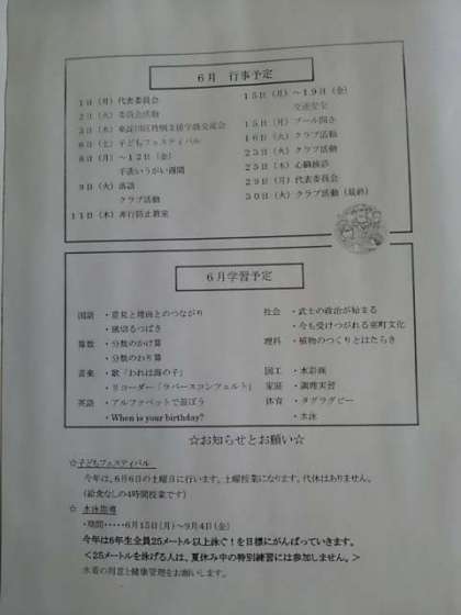 6年学年だより6月号