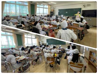 カツカレーライスは、ジューシーな一口とんかつがのったボリューム満点のカレーライスでした。1年生から6年生までたくさんの児童がおかわりをする姿がよくみられました。