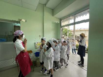 給食当番は、服装を整えて、衛生敵に給食の準備をしましょう。