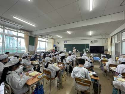 豚丼は、豚肉や玉ねぎ、にんじん、青ねぎなどが入った彩りのよい具材でごはんが進み、おかわりをする児童がたくさんいました。