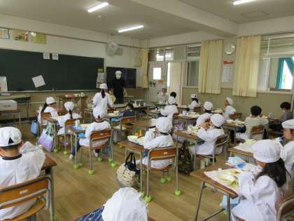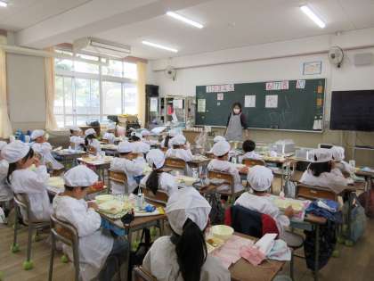 じゃがいものミートグラタンは、ひき肉とホクホクした食感のじゃがいもが入ったトマト風味の大人気のグラタンで、おかわりをする児童がたくさんいました。