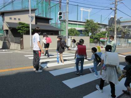 地域別で班編成を行い、1〜6年生まで各教室に分かれて集まり自己紹介や普段通る通学路の安全確認を行いました。