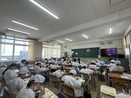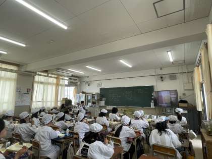 八宝菜の「八」は数が多いことを意味する言葉で、よい材料をたくさん使って作った料理のことを言います。今日の八宝菜には、豚肉、うずら卵、たまねぎ、キャベツ、にんじん、たけのこ、ピーマン、しいたけの8種類の材料が使われています。
