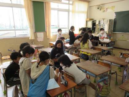 いろいろな角度から写したり、とても近くで写したりとよく考えないと分からないモノばかりで、とても盛り上がり、1年生〜6年生までみんなで意見を出し合っている班が多く、少し仲を縮めることができた様子でした。