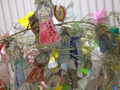 少し早いですが、1年生と2年生の子どもたちが短冊に願いを込めて、笹に短冊を吊るしました。この笹は、今年も7月7日の七夕の節供頃まで、大阪市営地下鉄・今里筋線の井高野駅に飾られます。ご利用の際には、是非、子どもたちの力作を見てあげてください。