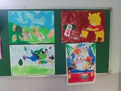 ものがたりのなかにはいりこんだら −ぼくの、わたしのすきな本、という題で、描きました。