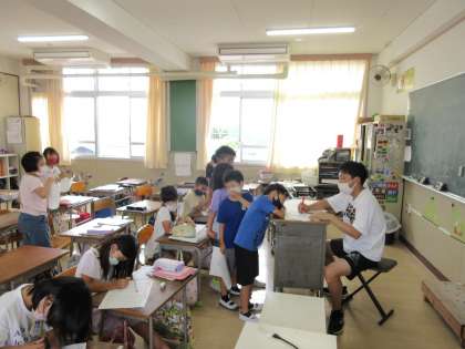 数の大小を不等号(<,>)を用いてくらべることを知るとともに、練習問題に取り組みました。ひとつの教室で学習する子どもが学級より少ないので、きめ細やかな指導ができます。