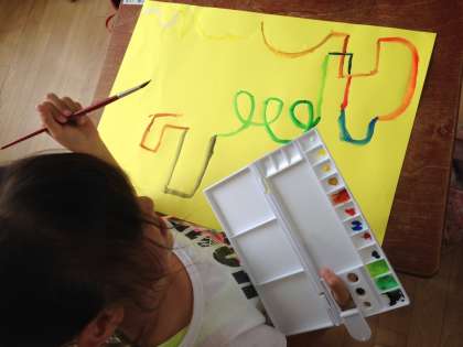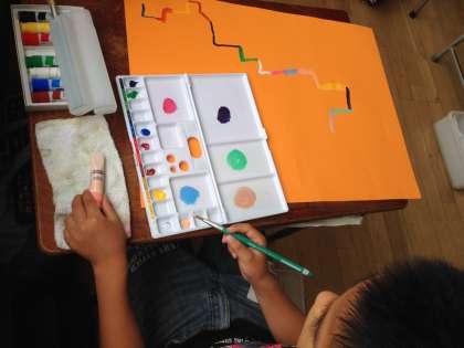 つなぐ色の順番や絵具の配合など色に親しむ活動の一つです。