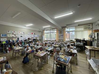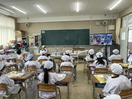 今日の給食時間には、図書の読み聞かせと給食委員会のクイズの放送、来週行われる子どもフェスティバルのCMの放送がありました。