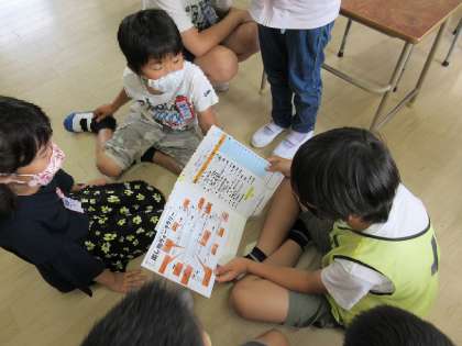 今日の児童集会は、来週の子どもフェスティバルのお店のまわる順番を班で相談して決めました。