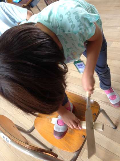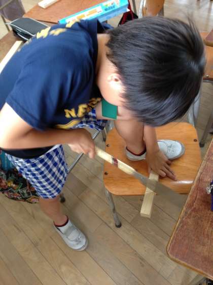 児童ののこぎりを使う姿を見て、とてもかっこよかったです。