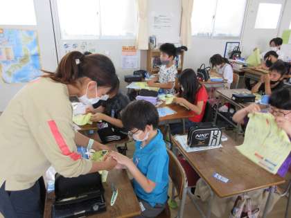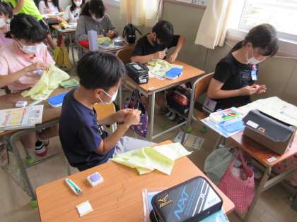 今は裁縫道具を使ってぬいとり学習をすすめています。
