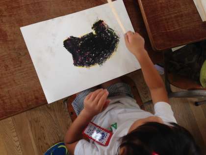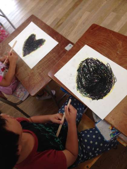 今日の1年生の図工では夢のお好み焼きを作りました。