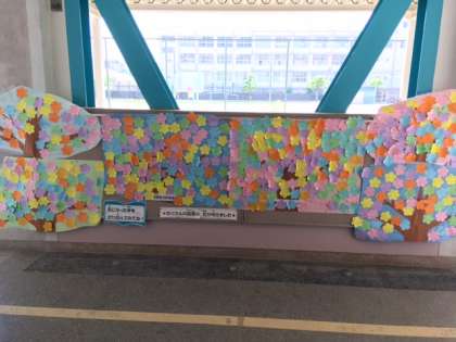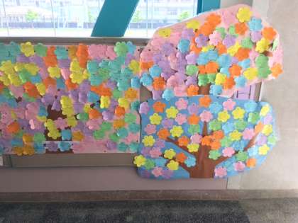 校舎1階、階段下の掲示板に「読書の木」が満開の花を咲かせています。個人懇談会でご来校の際は是非ご覧ください。