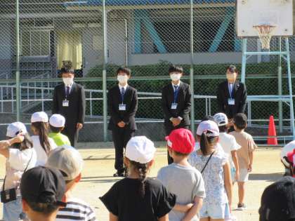 始めに校長先生から今日から来られた4名の教育実習生の紹介がありました。