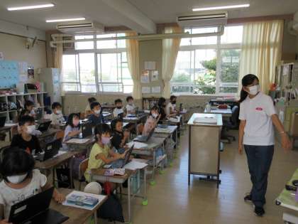 初めに一つ目のテーマ「なかまはずれがはじまった、あなたならどうする?」の動画を視聴し、自分の考えを一人一台端末の画面でポインティングしました。