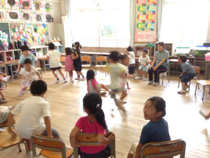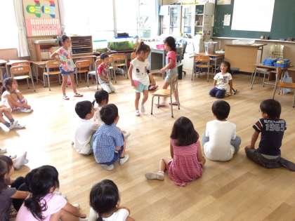 1年1組ではイス取りゲームやフルーツバスケットなどしました。