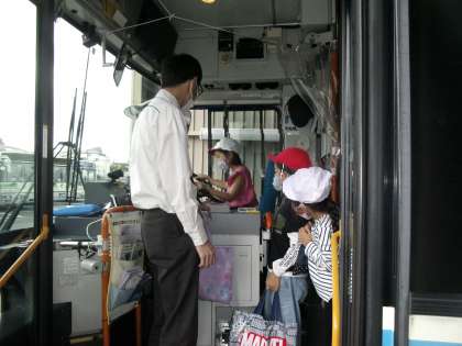 実際に運転席に座ってドアの開閉操作をさせていただいたことや、バスに乗り込んで洗車機の中を通ったことでした。