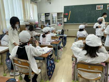 ほたて貝には、大きな貝柱があり、給食ではこの貝柱を使っています。貝柱には、うま味がたくさん含まれ、給食ではシチューやスープなどに使われています。