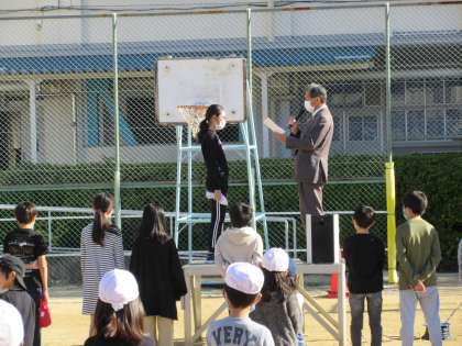 その後、運動会までがんばってくれた前期代表委員のメンバーに感謝状の贈呈がありました。学校みんなのためにがんばってくれてありがとう!