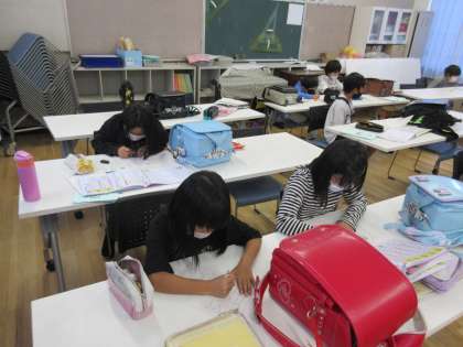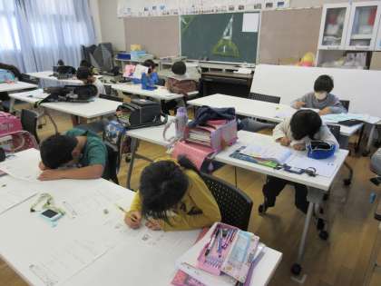 毎週火曜日と木曜日の放課後、1階の多目的室では「のびのび学習」が行われています。火曜日は4年生、木曜日は3年生の希望者が対象です。