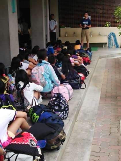 校長先生の話、5年生の先生の話、付添の先生の話を、児童は疲れた顔を見せることなく真剣に聞いていました。