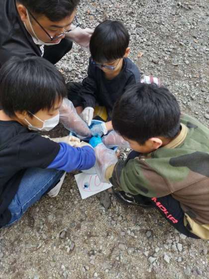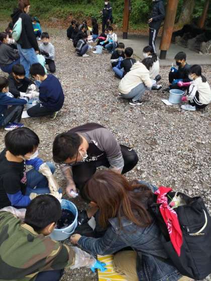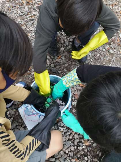 藍染め体験。染めています