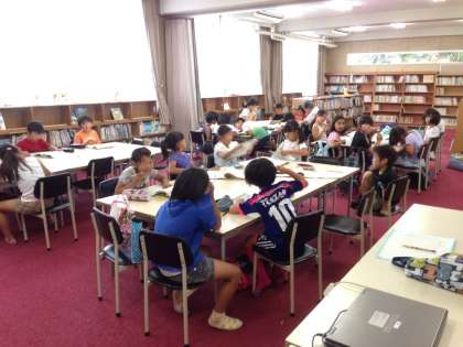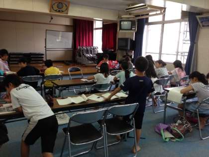 今年は泳ぐ前後の時間でそれぞれの学年が学習会を行っています。