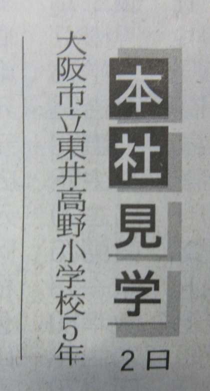 11月2日に、5年生が読売新聞大阪本社に社会見学に行きましたが、11月3日付の読売新聞朝刊の「本社見学」コーナーに本校の名前が掲載されています。