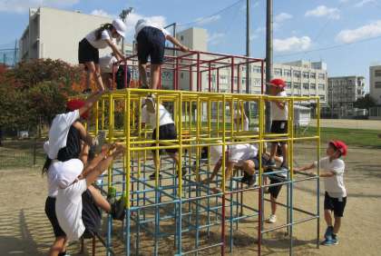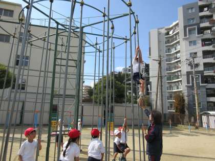 1年生は体育の学習で、のぼり棒にチャレンジ中です。
