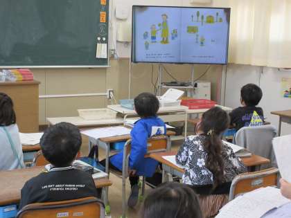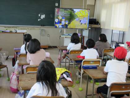 今日の朝の読み聞かせは、「だいじょうぶ だいじょうぶ」と「うそ」の2冊の絵本でした。