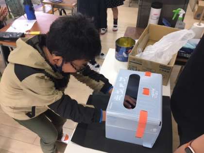 全ての学級で特殊なライト使った手洗いチェッカーで洗い残しを確認をしています。