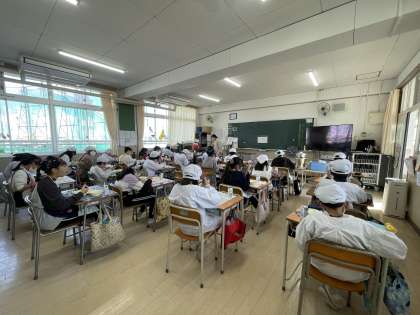 なめこは、ブナの切り株などに発生するぬめりのあるきのこの一つです。秋には、天然のなめこが市場に出回ることがあります。今日の給食では、みそ汁の実として使用しています。