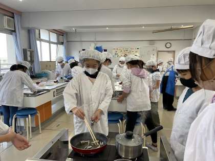 5−2も5、6時間目に1組と同じように調理実習を実施しました。